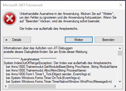 als der Fehler auftauchte, habe ich den Trainer gestartet und anschließend direkt Anno 1800, so wurde erst