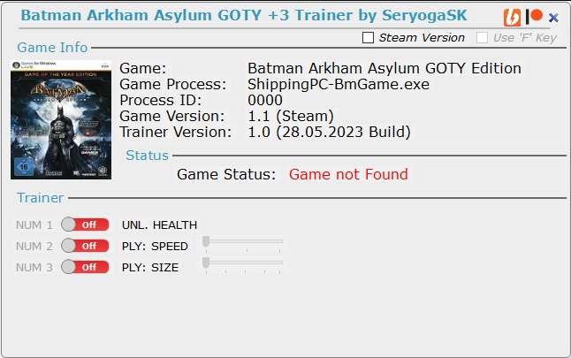 Ein Trainer für Batman Arkham Asylum GOTY Edition [Steam/Epic] Version 1.1